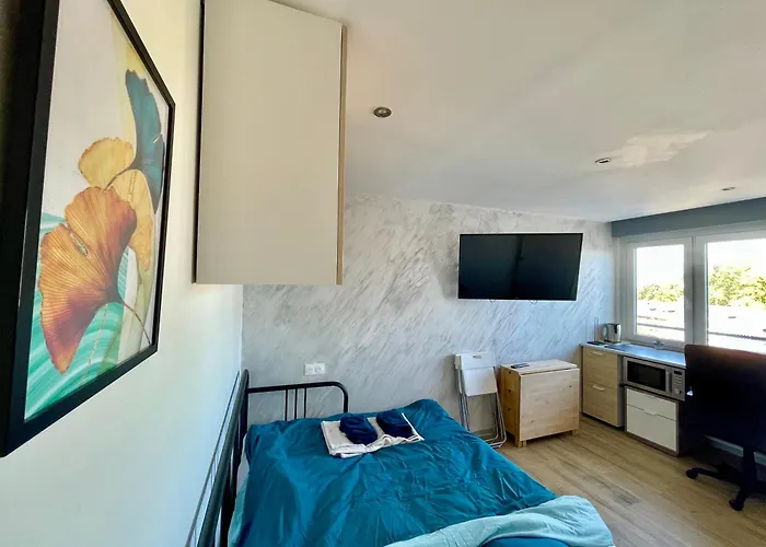 The Studio Wilson - Mulhouse Station公寓设有大厨房和配写字台,咖啡机/煮茶机 和卫星频道平板电视的客房. 它离米卢斯展览中心仅有2.7公里的路程,而且离Musée Historique de Mulhouse只有550米的路程.